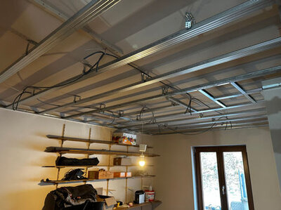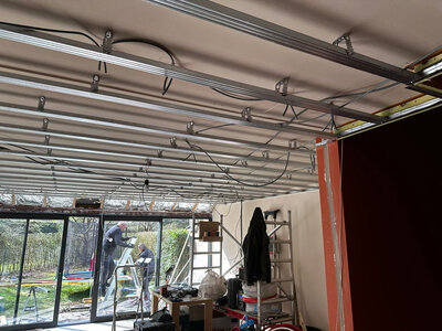 Installation de deux nouveaux tubes lumineux dans un garage avec deux interrupteurs.