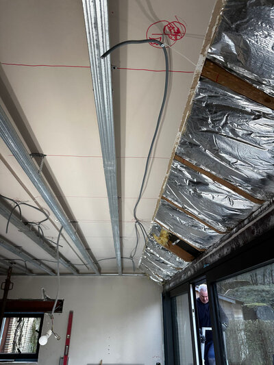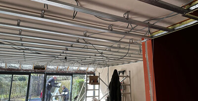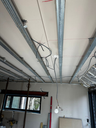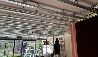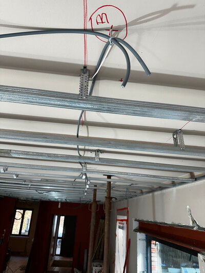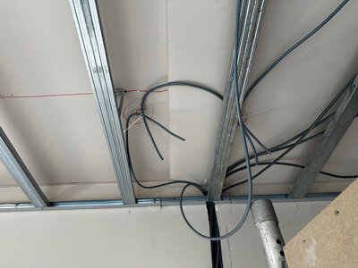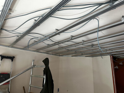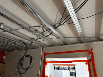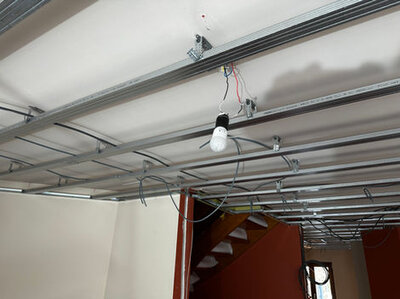 Pour réaliser des ambiances différentes et des allumages spécifiques selon les déplacements, nous avons préparer tout le câblage dans un faux plafond.