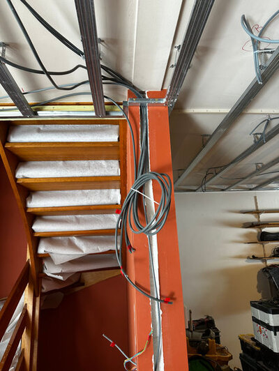 J'ai installé les câbles d'alimentation dans des tubes apparents au mur et encastrés dans le plafond