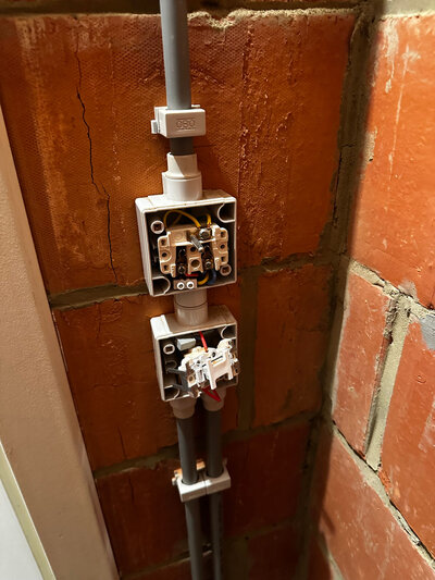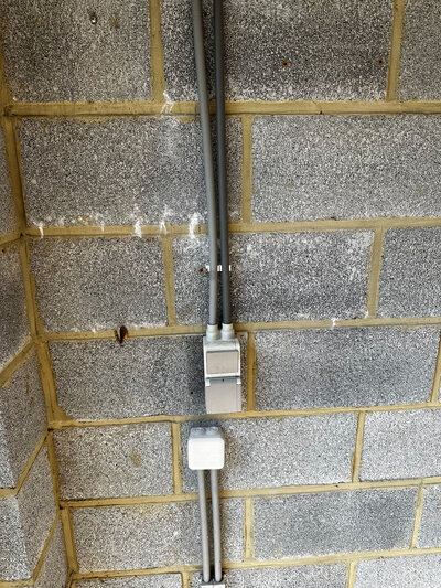 J'ai installé les câbles d'alimentation dans des tubes apparents au mur et encastrés dans le plafond