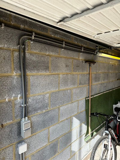 Installation de deux nouveaux tubes lumineux dans un garage avec deux interrupteurs.