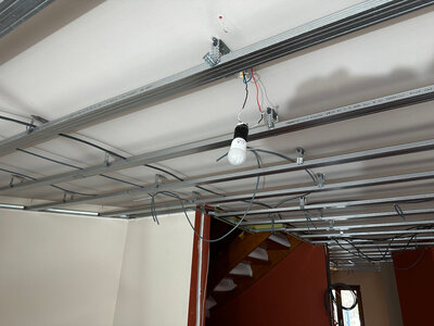 Pour réaliser des ambiances différentes et des allumages spécifiques selon les déplacements, nous avons préparer tout le câblage dans un faux plafond.